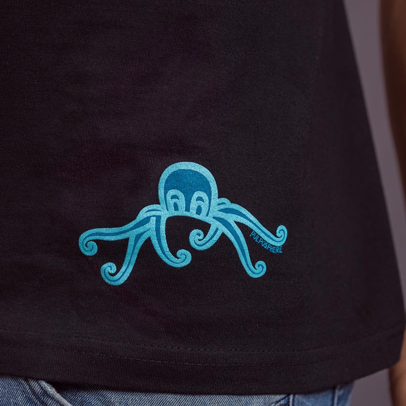 • Zweifarbiger Pulpo Print links unten auf der Vorderseite
